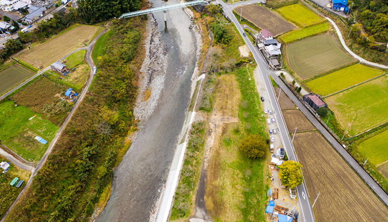 株式会社地圏総合コンサルタント様のご依頼で、愛媛県西条市丹原にある中山川付近で空撮行いました。